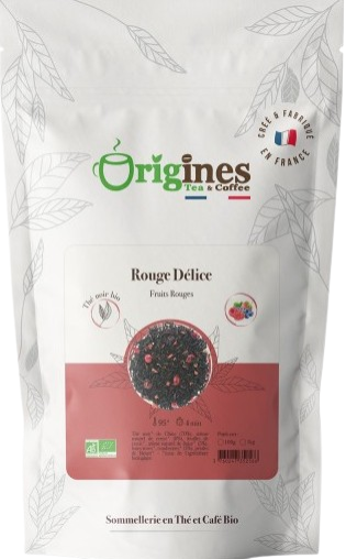 Rouge Délice est un thé noir bio à la cerise, à la fraise et aux cranberries.