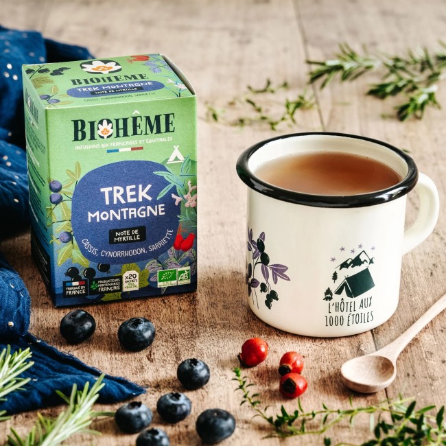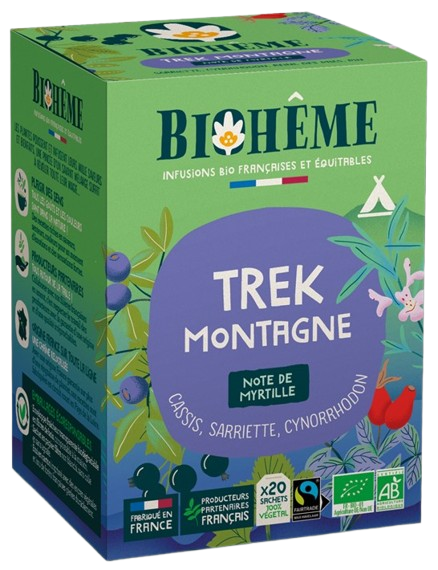 Envie de gravir des sommets ? Le soleil de la garrigue et la fraicheur des sous bois dans une recette ! Le cassis et le cynorrhodon vous accompagnent dans vos mouvements, la sarriette soutient la résistance physique. Et une note de myrtille pour le plaisir ! Une recette puissante et fruitée à boire sur les chemins….
