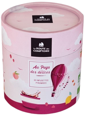 Dans le coffret au Pays des Délices, on y trouve un assortiment varié de thés et infusions irrésistibles aux saveurs gourmandes sous forme de coffret de 20 infusettes format pyramide.