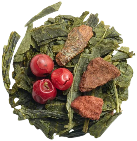 Thé vert, cannelle, baies roses, arômes naturels (cranberry, orange amère).