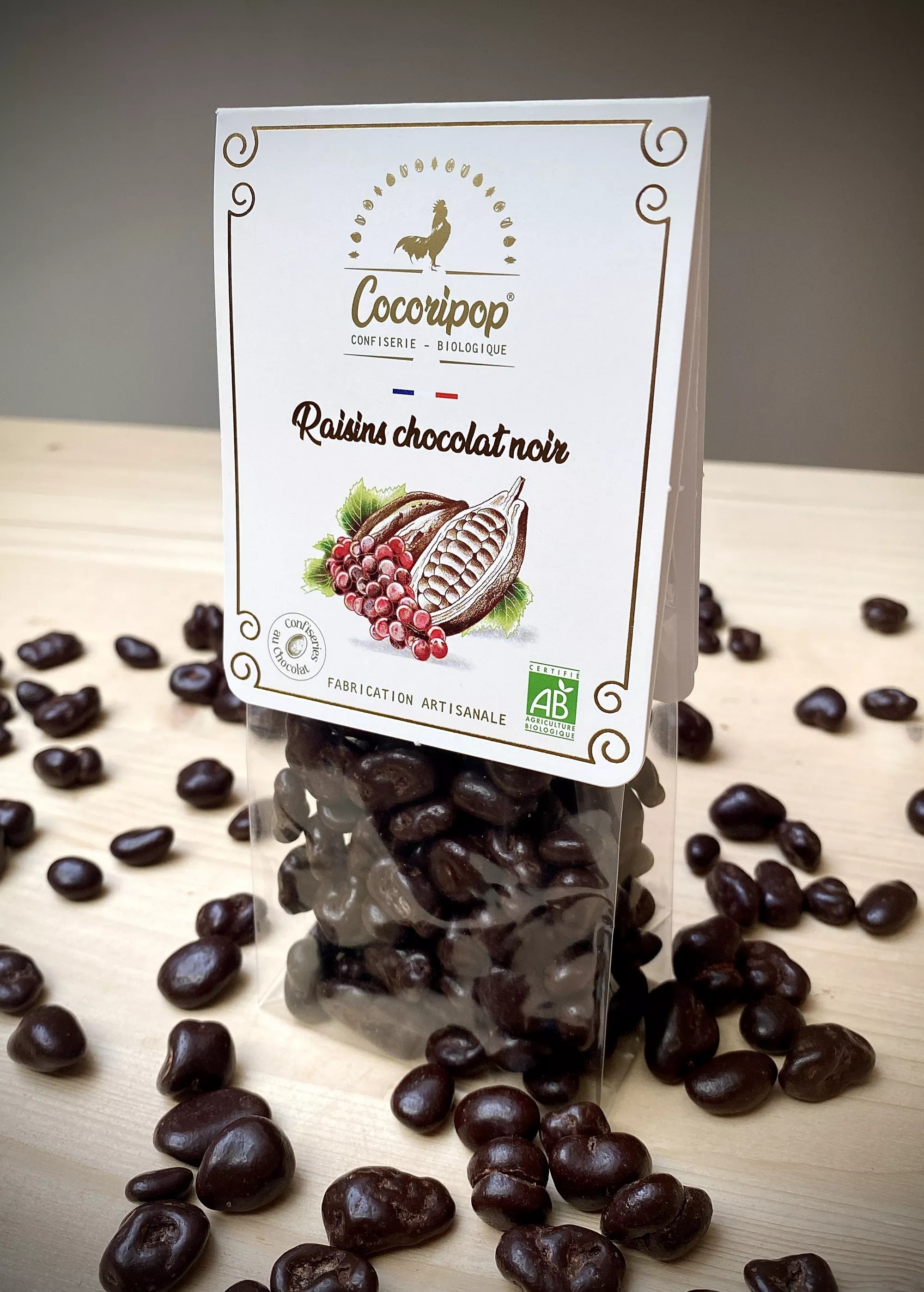 Raisins moelleux enrobés d'un fin chocolat noir.