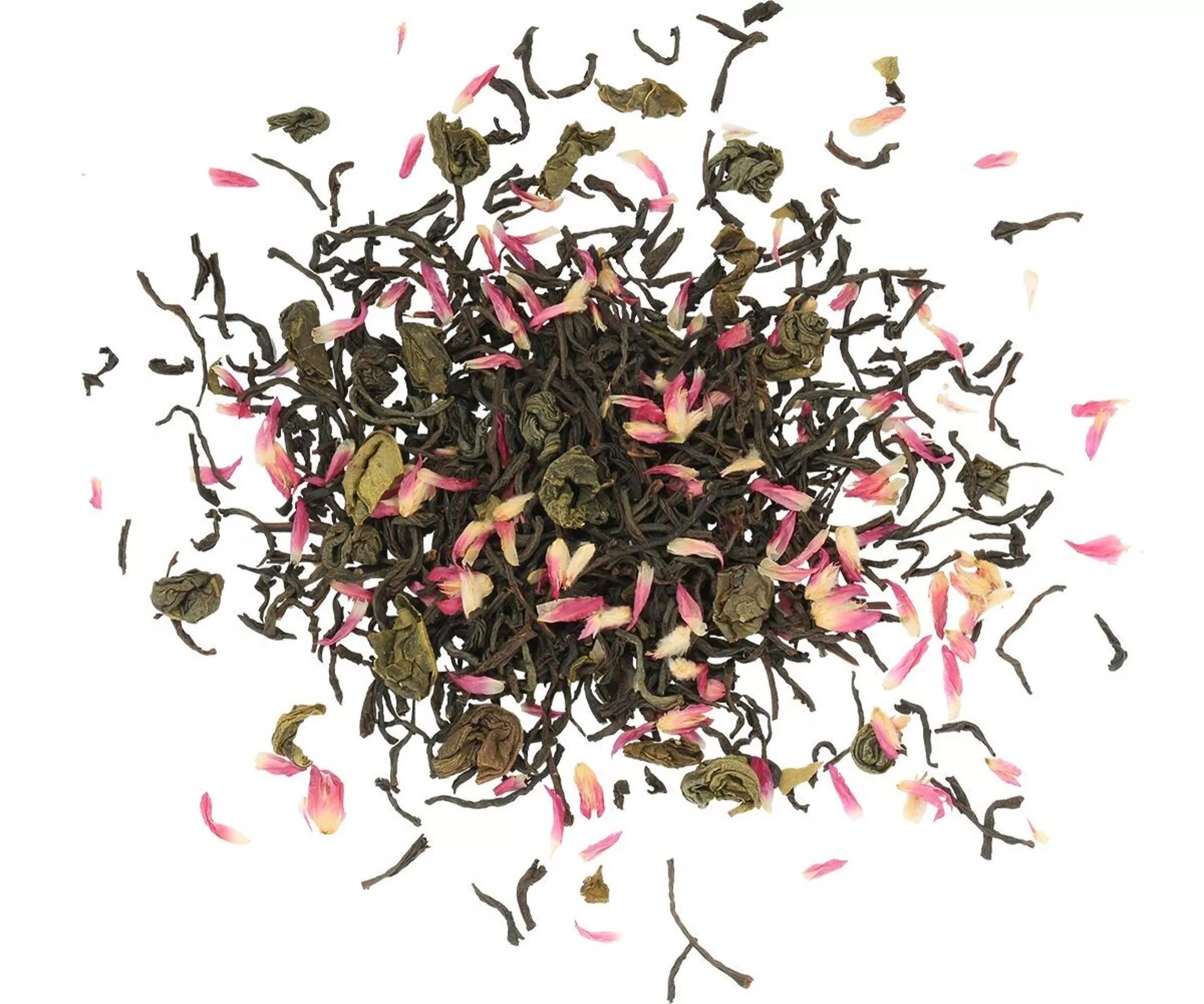 Thé noir et de thé vert de Ceylan, amarante naturelle et arômes d'amande et de rose