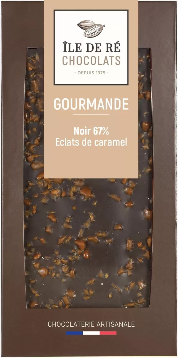 Cette tablette allie puissance et délicatesse du chocolat noir, le tout accompagné de délicieux éclats de caramel !