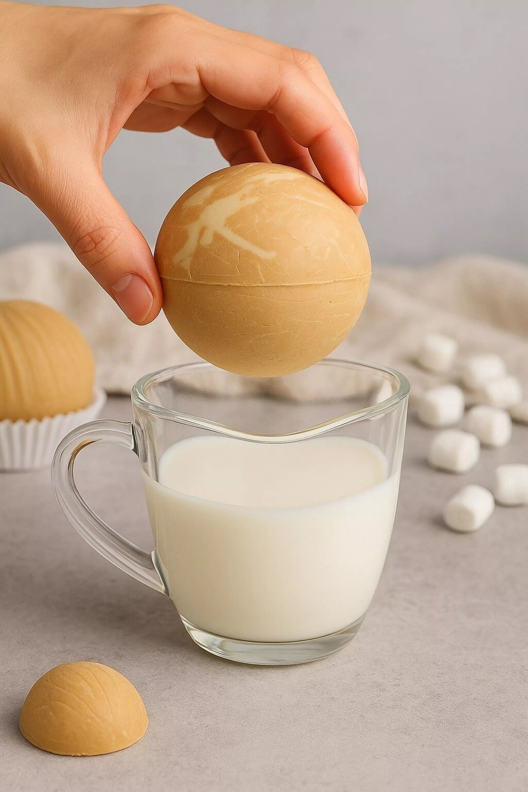 Plongez cette bombe de chocolat chaud dans 200 ml de lait bien chaud et laissez fondre la gourmandise 😍
