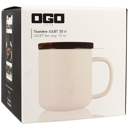 Tisanière en grès 300 ml Blanc et couvercle en acacia - OGO