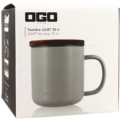 Tisanière en grès 300 ml gris perle et couvercle en acacia - OGO